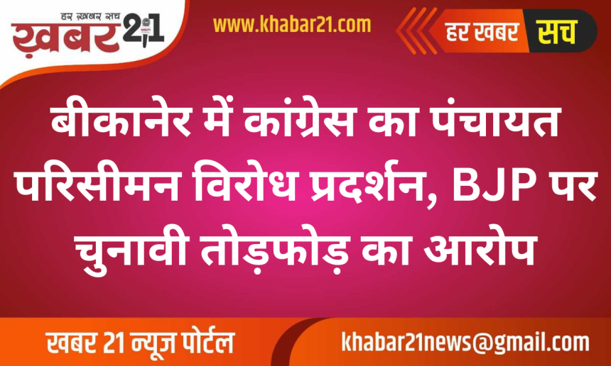Khabar21 > Blog > बीकानेर > बीकानेर में कांग्रेस का पंचायत परिसीमन विरोध प्रदर्शन, BJP पर चुनावी तोड़फोड़ का आरोप