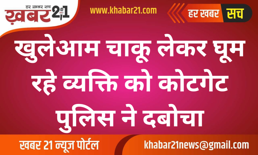Reading: खुलेआम चाकू लेकर घूम रहे व्यक्ति को कोटगेट पुलिस ने दबोचा