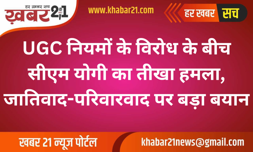 गोरखपुर में एक विकास परियोजना के लोकार्पण कार्यक्रम के दौरान उत्तर प्रदेश के मुख्यमंत्री योगी आदित्यनाथ ने UGC के नए नियमों को लेकर चल रहे विरोध के बीच जातिवाद और परिवारवाद पर कड़ा रुख अपनाया। उन्होंने कहा कि जैसे ही प्रदेश में विकास की गति तेज होती है, कुछ जातिवादी और परिवारवादी ताकतें माहौल बिगाड़ने की कोशिश करने लगती हैं।