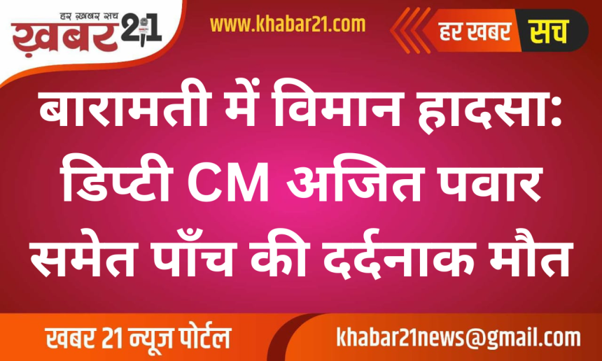 महाराष्ट्र में आज सुबह बारामती के पास एक विमान दुर्घटनाग्रस्त हो गया, जिसमें राज्य के उपमुख्यमंत्री और राष्ट्रीय कांग्रेस पार्टी (NCP) नेता अजित पवार का निधन हो गया है। दुर्घटना सुबह विमान की लैंडिंग के दौरान हुई, जब विमान बारामती हवाई पट्टी के पास उतरने की कोशिश कर रहा था। हादसे में कुल पांच लोगों की मौत होने की खबर सामने आई है।