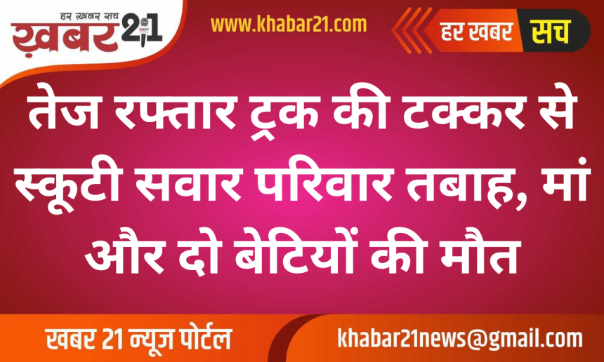 तेज रफ्तार ट्रक की टक्कर से स्कूटी सवार परिवार तबाह, मां और दो बेटियों की मौत