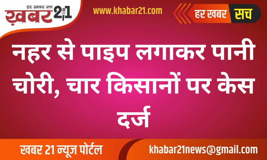 नहर से पाइप लगाकर पानी चोरी, चार किसानों पर केस दर्ज