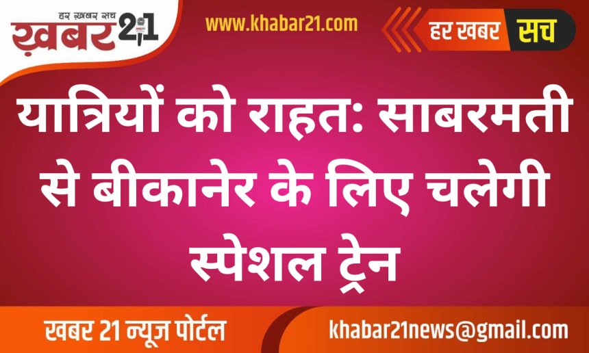 बीकानेर आने-जाने वाले यात्रियों के लिए रेलवे प्रशासन ने राहत भरी खबर दी है। बढ़ती भीड़ और अतिरिक्त यात्री दबाव को देखते हुए रेलवे ने दो एकतरफा (वन-वे) स्पेशल ट्रेनों के संचालन का फैसला लिया है। ये विशेष रेल सेवाएं पोरबंदर से जोधपुर और साबरमती से बीकानेर के बीच चलाई जाएंगी।