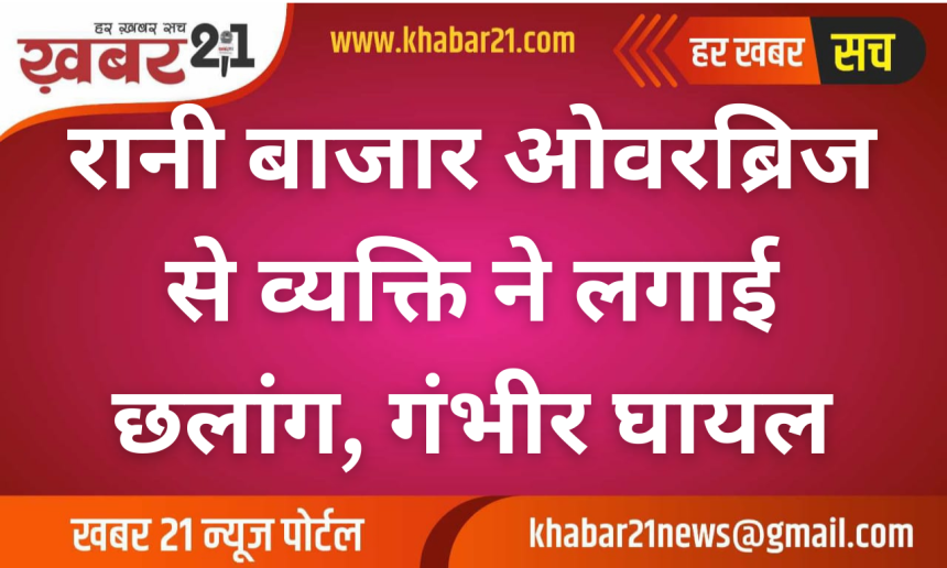 कोटगेट थाना क्षेत्र में स्थित रानी बाजार ओवरब्रिज पर सोमवार देर शाम उस समय अफरा-तफरी मच गई, जब एक व्यक्ति ने अचानक पुल से नीचे छलांग लगा दी। इस घटना में व्यक्ति गंभीर रूप से घायल हो गया।