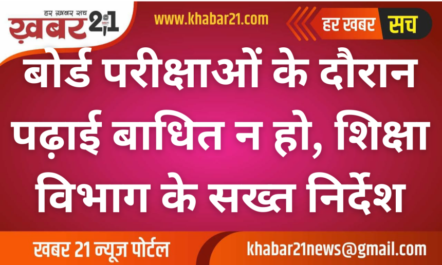 Khabar21 > Blog > राजस्थान > बोर्ड परीक्षाओं के दौरान पढ़ाई बाधित न हो, शिक्षा विभाग के सख्त निर्देश – Rajasthan News
