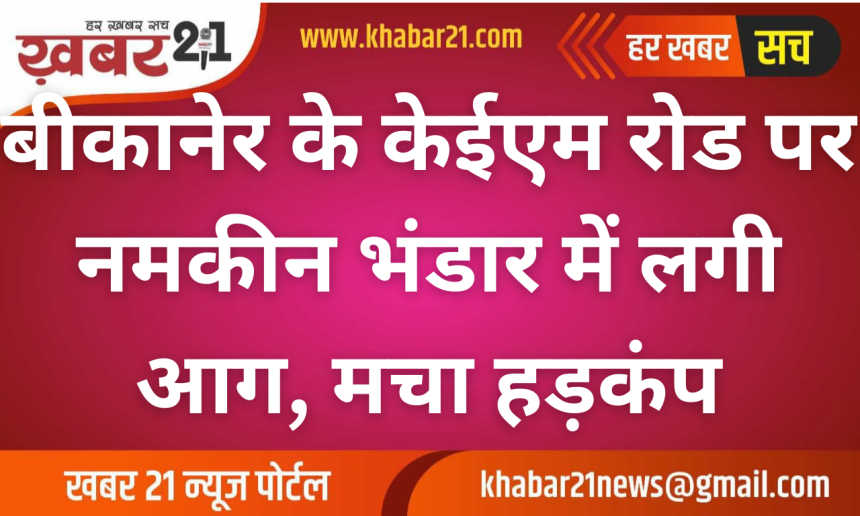 बीकानेर शहर के केईएम रोड इलाके में रविवार को उस समय अफरा-तफरी मच गई, जब एक मशहूर नमकीन भंडार में अचानक आग लग गई। घटना अग्रवाल नमकीन भंडार की बताई जा रही है, जहां दुकान के ऊपर बनी छत से अचानक धुआं उठता दिखाई दिया और देखते ही देखते आग की लपटें फैलने लगीं।