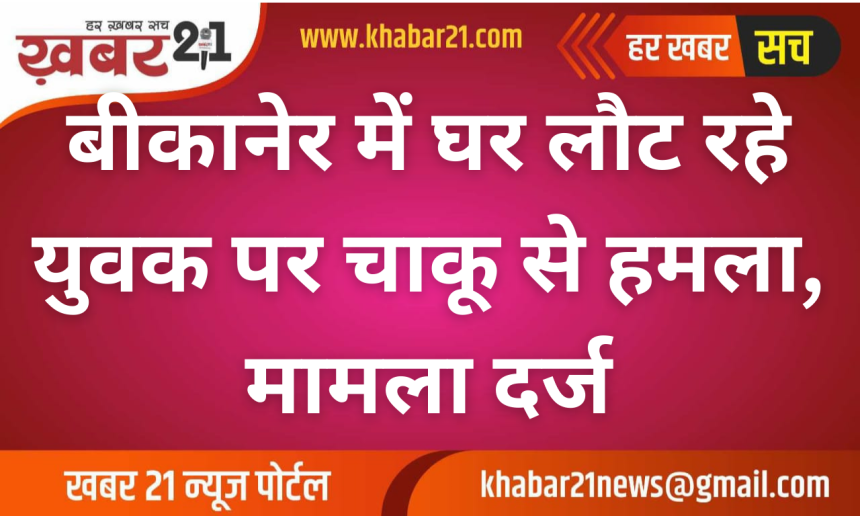 बीकानेर। नयाशहर थाना क्षेत्र में चाकू से हमले की एक गंभीर घटना सामने आई है। सिपाहियों का मोहल्ला, सोनगिरी कुआं इलाके में घर की ओर जा रहे एक युवक पर रास्ता रोककर हमला किया गया। इस मामले में पीड़ित के पिता की ओर से नामजद रिपोर्ट दर्ज कराई गई है।
