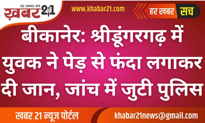 Khabar21 > Blog > बीकानेर > बीकानेर: श्रीडूंगरगढ़ में युवक ने पेड़ से फंदा लगाकर दी जान, जांच में जुटी पुलिस