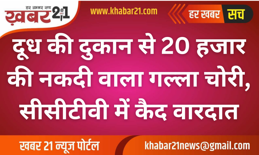 बीकानेर के कोतवाली थाना क्षेत्र में सोमवार को चोरी की एक चौंकाने वाली वारदात सामने आई है। दाऊजी मंदिर के सामने स्थित चौधरी दूध भंडार से एक युवक नकदी से भरा गल्ला उठाकर फरार हो गया। गल्ले में करीब 20 हजार रुपये नकद होने की जानकारी सामने आई है।