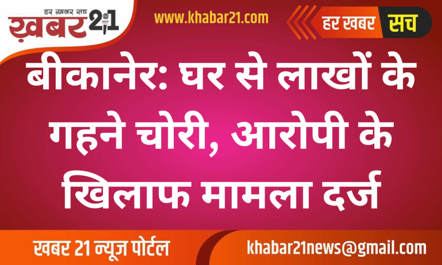 बीकानेर के कोटगेट थाना क्षेत्र में चोरी का गंभीर मामला सामने आया है। फड़ बाजार निवासी बसंत पुत्र राकेश कुमार ने अपने घर से लाखों रुपये मूल्य के गहनों की चोरी होने की शिकायत पुलिस में दर्ज कराई।