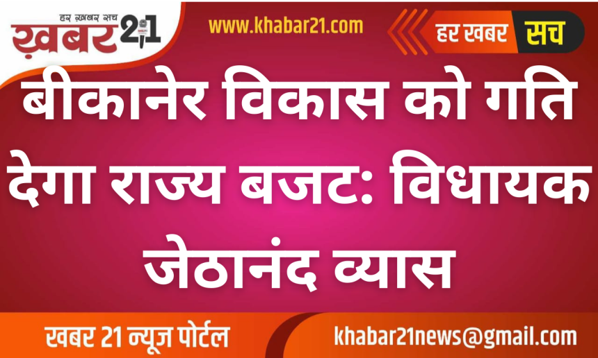 बीकानेर। राज्य सरकार द्वारा प्रस्तुत बजट को बीकानेर पश्चिम विधायक जेठानंद व्यास ने प्रदेश को उन्नति की दिशा में आगे बढ़ाने वाला बताया है। उन्होंने कहा कि इस बजट में बीकानेर शहर की मूलभूत समस्याओं के समाधान और दीर्घकालीन विकास के लिए ठोस प्रावधान किए गए हैं, जिससे आमजन को सीधा लाभ मिलेगा।