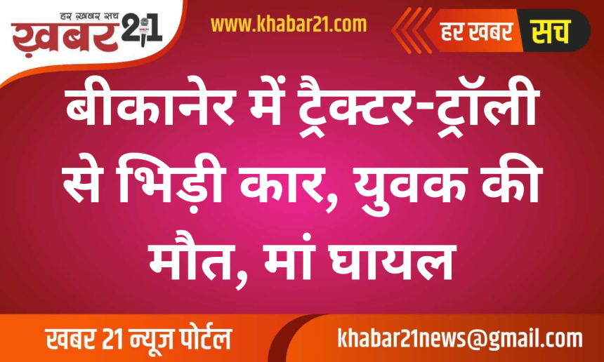 राजस्थान के बीकानेर जिले में रविवार देर रात एक दर्दनाक सड़क हादसे में 26 वर्षीय युवक की मौत हो गई, जबकि उसकी मां गंभीर रूप से घायल हो गई। घटना जामसर थाना क्षेत्र में बीकानेर–अनूपगढ़ मार्ग पर नूरसर फांटा के पास हुई।