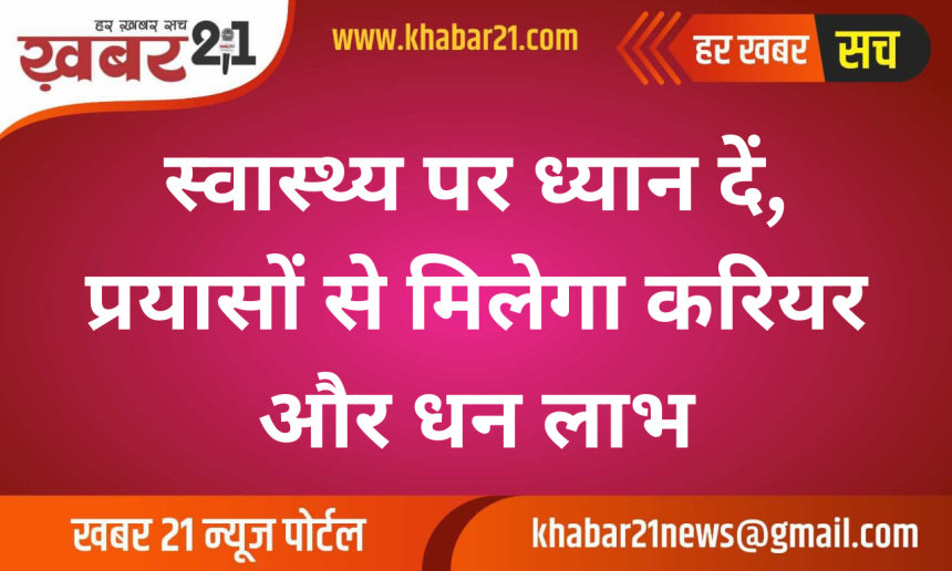 Khabar21 > Blog > राशिफल > स्वास्थ्य पर ध्यान दें, प्रयासों से मिलेगा करियर और धन लाभ