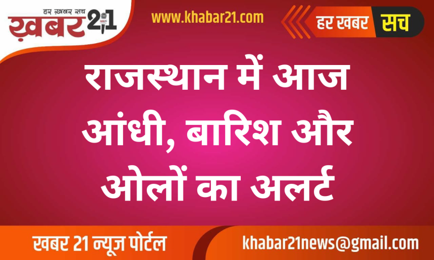 राजस्थान में आज मौसम का मिजाज बदलने वाला है। दोपहर बाद कई जिलों में तेज आंधी, बारिश और ओलावृष्टि की संभावना जताई गई है। मौसम विभाग ने 13 जिलों में अलर्ट जारी किया है।