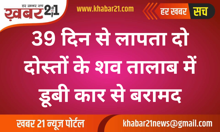 टोंक जिले में 39 दिन से लापता दो दोस्तों के शव तालाब में डूबी कार से बरामद किए गए। घटना दूनी थाना क्षेत्र के आवां कस्बे स्थित बूंदी रोड पर रामसागर तालाब की है, जहां सोमवार सुबह ग्रामीणों ने पानी में कार की छत दिखाई देने पर पुलिस को सूचना दी।