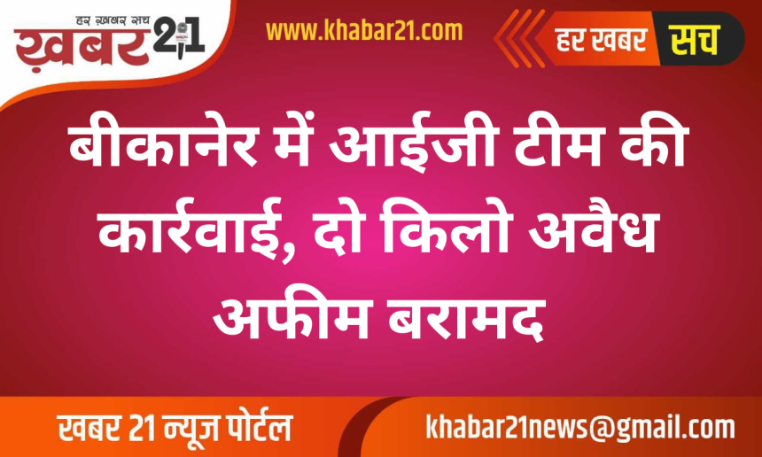 बीकानेर में नशीले पदार्थों के खिलाफ पुलिस का अभियान लगातार जारी है। हाल ही में नापासर क्षेत्र में तीन किलो अफीम पकड़े जाने के बाद अब आईजी हेमंत शर्मा की स्पेशल टीम ने बड़ी कार्रवाई करते हुए करीब दो किलो अवैध अफीम जब्त की है।