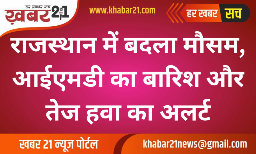 Khabar21 > Blog > राजस्थान > राजस्थान में बदला मौसम, आईएमडी का बारिश और तेज हवा का अलर्ट