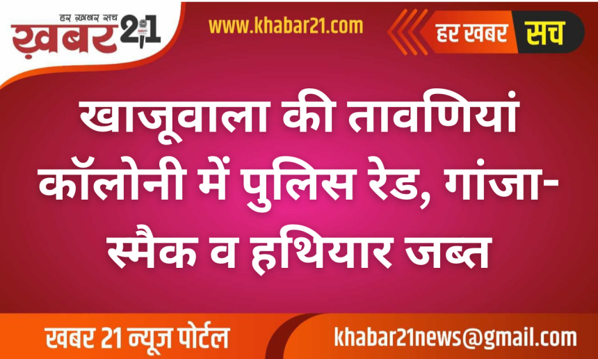 बीकानेर। जिले में नशे के खिलाफ चलाए जा रहे अभियान के तहत खाजूवाला थाना पुलिस ने बड़ी कार्रवाई करते हुए अवैध मादक पदार्थों और हथियार के साथ एक युवक को गिरफ्तार किया है। यह कार्रवाई तावणियां कॉलोनी में की गई।