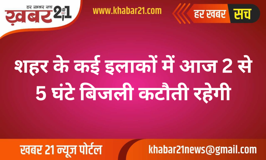 शहर के कई इलाकों में आज 2 से 5 घंटे बिजली कटौती रहेगी