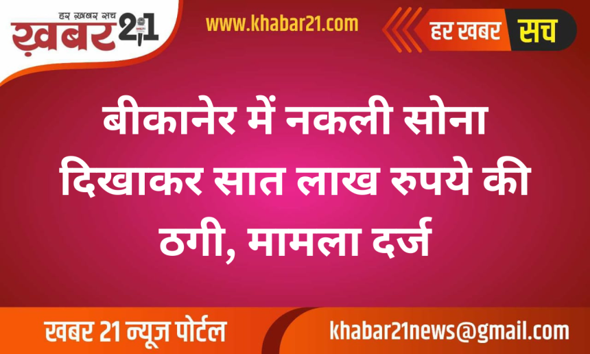 Khabar21 > Blog > बीकानेर > बीकानेर में नकली सोना दिखाकर सात लाख रुपये की ठगी, मामला दर्ज