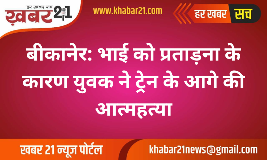 बीकानेर के नापासर थाना क्षेत्र में 24 फरवरी को एक युवक ने ट्रेन के आगे कूदकर आत्महत्या कर ली। रतनलाल पुत्र मानाराम जाट ने चार लोगों – भगवान सिंह चारण, विष्णु चारण, मनीराम सारण और ओमप्रकाश गोदारा – के खिलाफ शिकायत दर्ज कराई। उनका आरोप है कि चारों ने मिलकर उसके भाई को मानसिक प्रताड़ना दी, जिससे उसने यह कदम उठाया। पुलिस ने रिपोर्ट के आधार पर मामला दर्ज कर जांच शुरू कर दी है। जांच थानाधिकारी सुषमा कुमारी कर रही हैं।