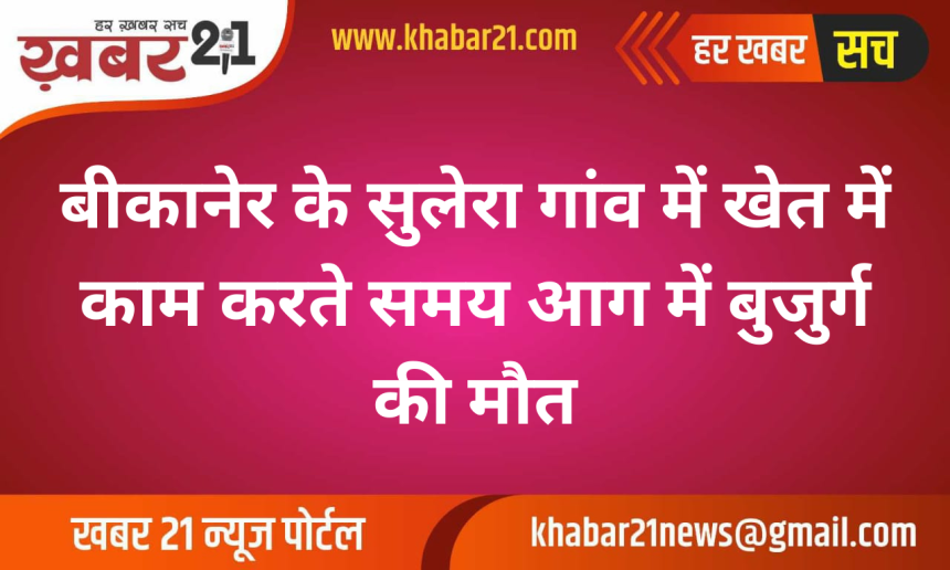 Khabar21 > Blog > बीकानेर > बीकानेर के सुलेरा गांव में खेत में काम करते समय आग में बुजुर्ग की मौत