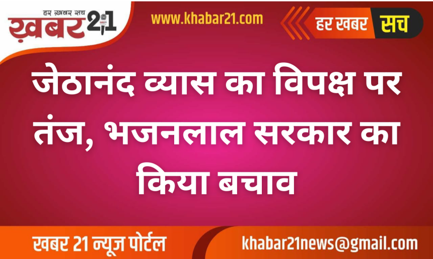 बीकानेर। बीकानेर पश्चिम से विधायक जेठानंद व्यास ने गुरुवार को विधानसभा में शहर से जुड़े विभिन्न विकास कार्यों और योजनाओं को लेकर अपनी बात रखी। इस दौरान उन्होंने विपक्ष पर तीखा तंज कसते हुए कहा, “कांग्रेस के कुछ खोटे सिक्के बाजार में नहीं चले, फिर भी आज भजनलाल सरकार में कमियां ढूंढ रहे हैं।”
