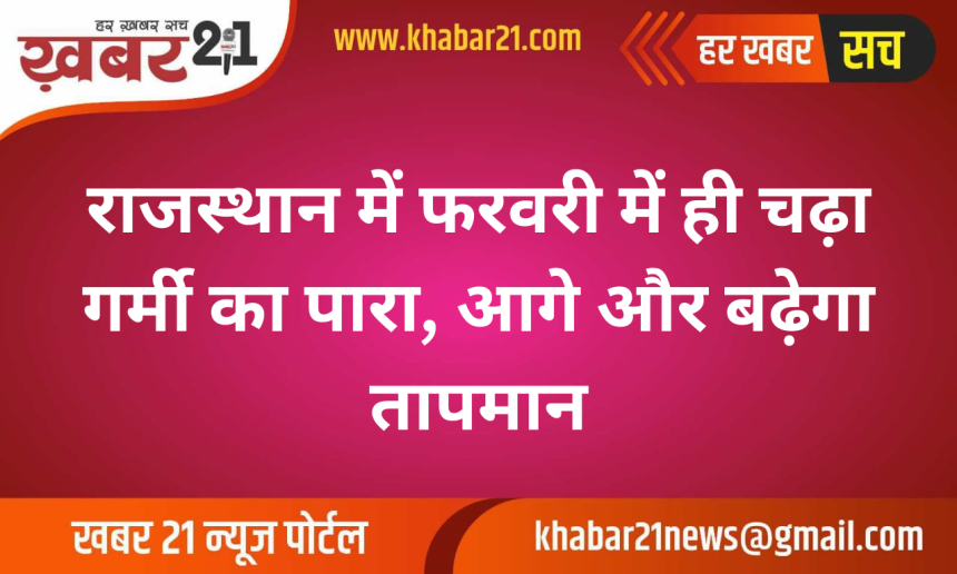 जयपुर। राजस्थान में इस बार सर्दी समय से पहले विदा होती नजर आ रही है। फरवरी के अंतिम सप्ताह में ही प्रदेश में मई-जून जैसी गर्मी महसूस की जा रही है। गुरुवार को कई शहरों में अधिकतम तापमान 37 डिग्री सेल्सियस के करीब पहुंच गया।