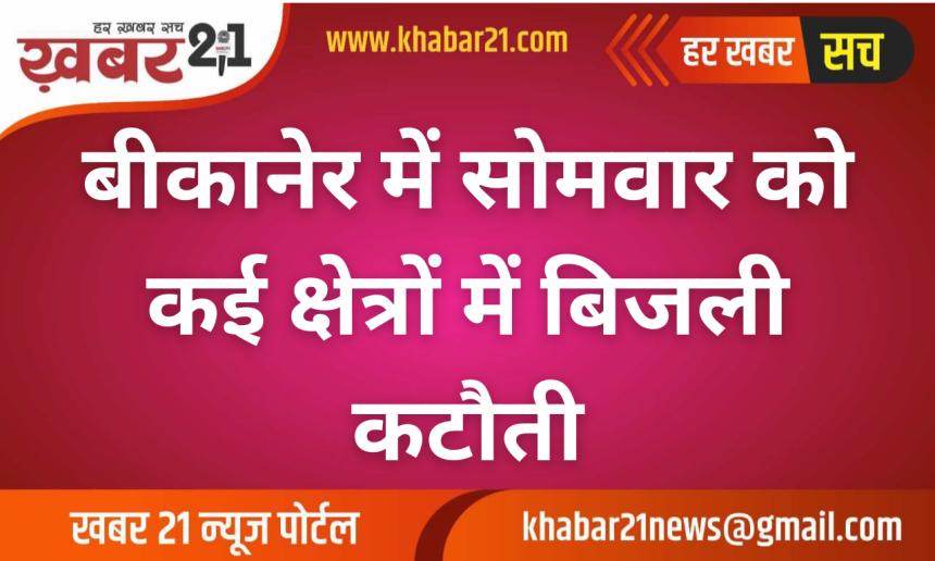 उदासर गांव, पेमासर गांव एवं आसपास का ग्रामीण क्षेत्र, विराट नगर, आर्मी गेट के पास का क्षेत्र, डिफेंस कॉलोनी, हेत नगर, मिडटाउन स्कूल के आसपास, वैशाली नगर, गांधी चौक, ग्रीन फील्ड स्कूल के पास, पंचारिया कॉलोनी, करणी विहार कॉलोनी, भावर कॉलोनी फेज 1 और 2, श्रीनाथ एन्क्लेव, हार्मनी कॉलोनी, नेचुरल ग्रीन के आसपास, शाना स्कूल क्षेत्र, दो भाई डेवलपर कॉलोनी, बिकानो रिजॉर्ट तथा पोल फैक्ट्री क्षेत्र में तीन घंटे बिजली आपूर्ति बंद रहेगी।