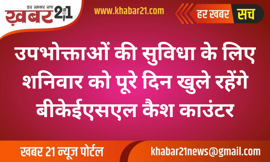 कंपनी के प्रवक्ता के अनुसार 7 मार्च शनिवार को सभी बिल संग्रहण केंद्र (कैश काउंटर) सुबह 9:30 बजे से शाम 6:00 बजे तक खुले रहेंगे। इस दौरान उपभोक्ता शहर में स्थित किसी भी बीकेईएसएल बिल कलेक्शन सेंटर पर जाकर अपने बिजली बिल का भुगतान कर सकेंगे।