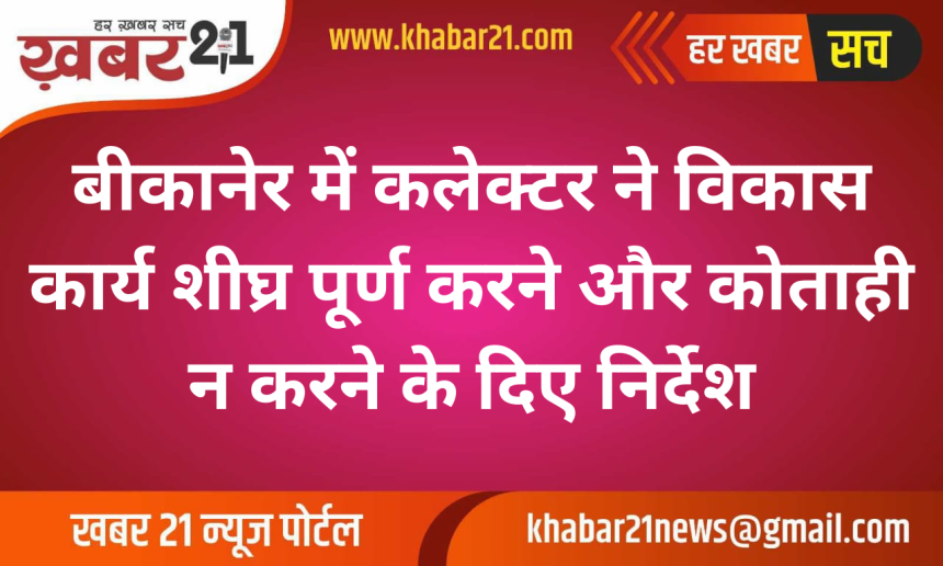 बीकानेर। जिला कलेक्टर नम्रता वृष्णि की अध्यक्षता में शुक्रवार को ग्रामीण विकास एवं पंचायती राज विभाग की मासिक समीक्षा बैठक जिला परिषद सभागार में आयोजित की गई। बैठक में कलेक्टर ने अधिकारियों को सांसद और विधायक निधि से संबंधित विकास कार्यों को प्राथमिकता के साथ पूर्ण करने के स्पष्ट निर्देश दिए।