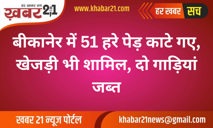 Bikaner जिले की Sridungargarh तहसील के Toliyasar गांव में हरे पेड़ों की अवैध कटाई का मामला सामने आया है। यहां एक खेत में कुल 51 पेड़ काट दिए गए, जिनमें 18 खेजड़ी के पेड़ भी शामिल हैं।