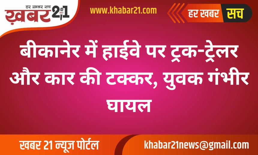 Bikaner जिले के Sridungargarh क्षेत्र में शुक्रवार देर रात नेशनल हाईवे पर हुए सड़क हादसे में एक युवक गंभीर रूप से घायल हो गया। यह दुर्घटना Hemasar और Benisar के बीच हुई, जहां एक मारुति ईको कार सामने से आ रहे ट्रक-ट्रेलर से टकरा गई।