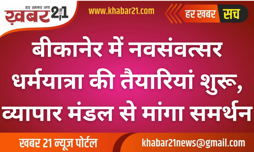 बीकानेर में भारतीय नवसंवत्सर के अवसर पर आयोजित होने वाली धर्मयात्रा को लेकर तैयारियां शुरू कर दी गई हैं। 19 मार्च 2026 को प्रस्तावित इस धर्मयात्रा के सफल आयोजन के लिए भारतीय नववर्ष समारोह समिति ने विभिन्न सामाजिक और व्यापारिक संगठनों से सहयोग और सहभागिता की अपील की है।
