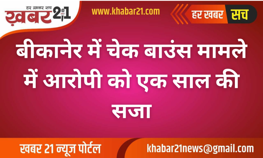 Khabar21 > Blog > बीकानेर > बीकानेर में चेक बाउंस मामले में आरोपी को एक साल की सजा
