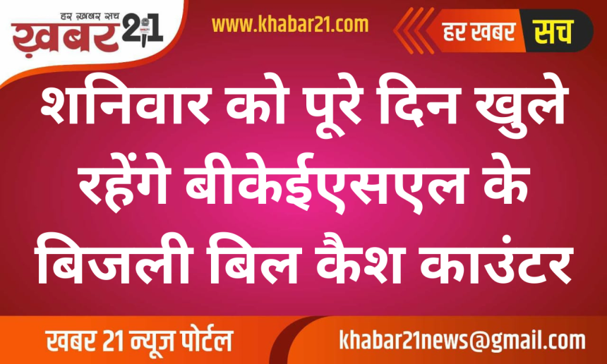 शनिवार को पूरे दिन खुले रहेंगे बीकेईएसएल के बिजली बिल कैश काउंटर