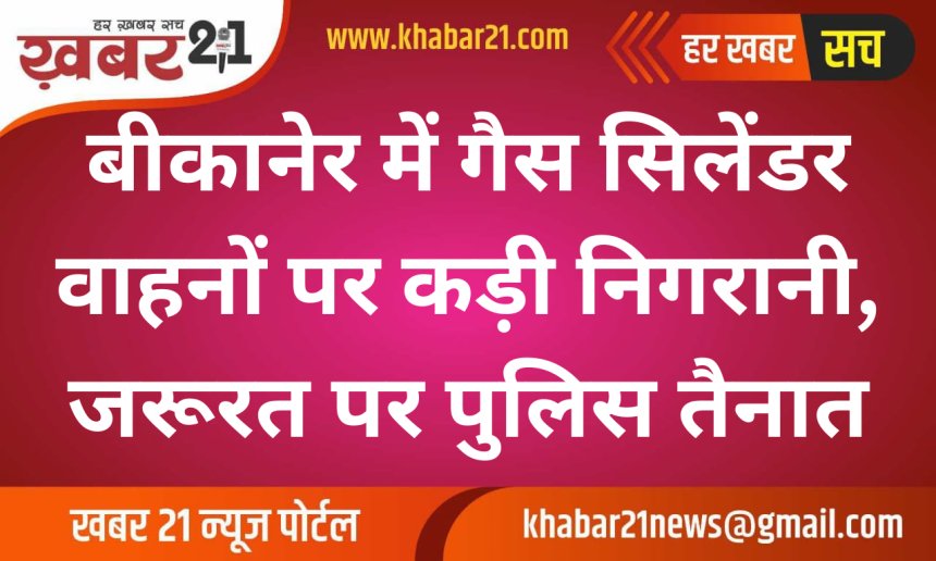 Khabar21 > Blog > बीकानेर > बीकानेर में गैस सिलेंडर वाहनों पर कड़ी निगरानी, जरूरत पर पुलिस तैनाती