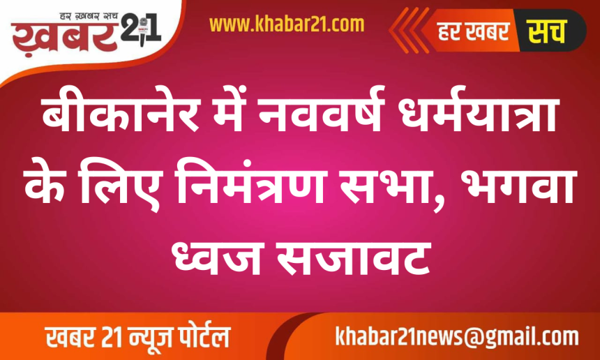 बीकानेर। 19 मार्च को बीकानेर में नववर्ष के अवसर पर हर साल की तरह इस वर्ष भी धर्मयात्रा आयोजित की जाएगी। इस धर्मयात्रा को लेकर नववर्ष समारोह समिति से जुड़े लोग लगातार शहरभर में निमंत्रण दे रहे हैं। इसी सिलसिले में रविवार की देर शाम को बारहगुवाड़ चौक में एक निमंत्रण सभा आयोजित की गई।