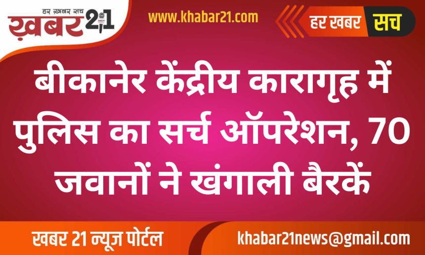 Khabar21 > Blog > बीकानेर > बीकानेर केंद्रीय कारागृह में पुलिस का सर्च ऑपरेशन, 70 जवानों ने खंगाली बैरकें