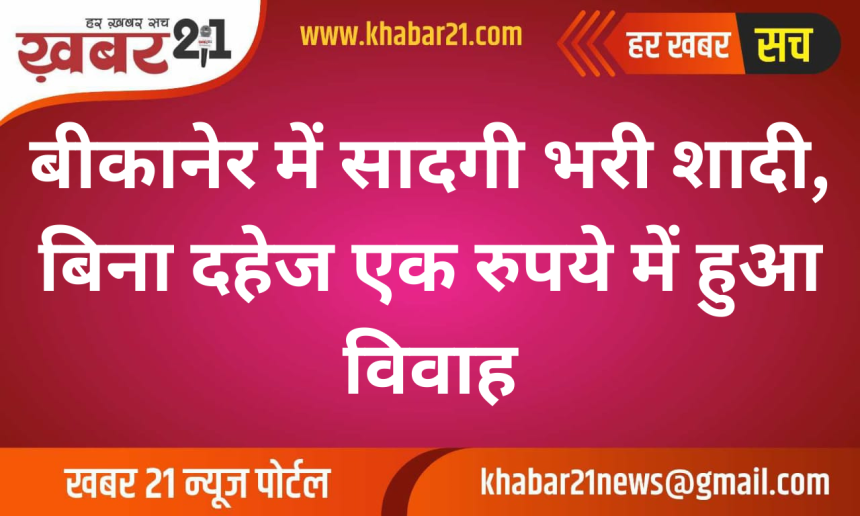 बीकानेर में दो परिवारों ने सामाजिक जिम्मेदारी और सादगी का अनोखा उदाहरण पेश किया है। शिवबाड़ी क्षेत्र निवासी मुकेश धोलपुरिया का विवाह अनीता कानखेड़िया के साथ 14 मार्च 2026 को पारंपरिक रीति-रिवाजों के अनुसार सम्पन्न हुआ।