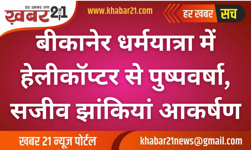 Khabar21 > Blog > बीकानेर > बीकानेर धर्मयात्रा में हेलीकॉप्टर से पुष्पवर्षा, सजीव झांकियां आकर्षण