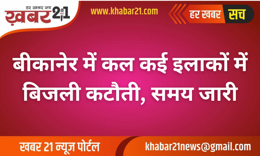 बीकानेर शहर में विद्युत तंत्र के रखरखाव को लेकर शुक्रवार को कई क्षेत्रों में निर्धारित समय के लिए बिजली आपूर्ति बंद रहेगी। बिजली कंपनी द्वारा जारी सूचना के अनुसार यह कटौती मरम्मत और मेंटेनेंस कार्यों के चलते की जा रही है।