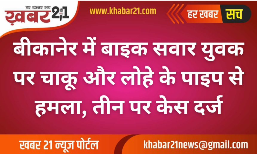 Khabar21 > Blog > बीकानेर > बीकानेर में बाइक सवार युवक पर चाकू और लोहे के पाइप से हमला, तीन पर केस दर्ज