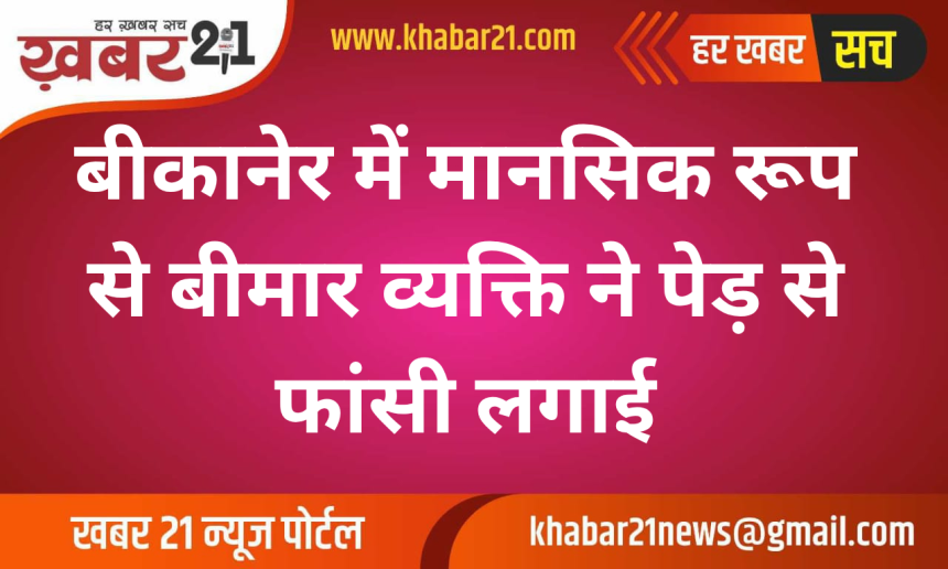 बीकानेर। जिले के कोलायत पुलिस थाना क्षेत्र के अंतर्गत आने वाले गुड़ा गांव में एक हृदयविदारक घटना सामने आई है, जहां एक व्यक्ति ने मानसिक अस्वस्थता के चलते अपनी जीवनलीला समाप्त कर ली।
