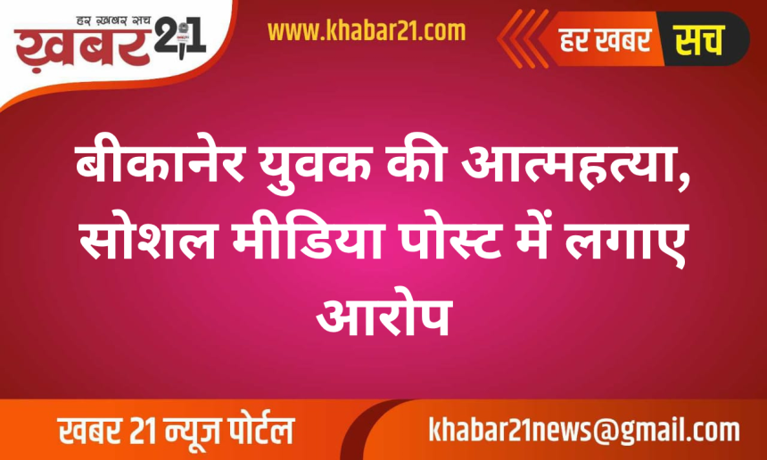 बीकानेर। जिले के जयनारायण व्यास कॉलोनी थाना क्षेत्र में एक युवक द्वारा जीवन लीला समाप्त करने का हृदयविदारक मामला सामने आया है। मृतक जयनारायण सुथार ने आत्मघाती कदम उठाने से ठीक पहले सोशल मीडिया पर एक विस्तृत पोस्ट साझा कर अपनी व्यथा व्यक्त की।