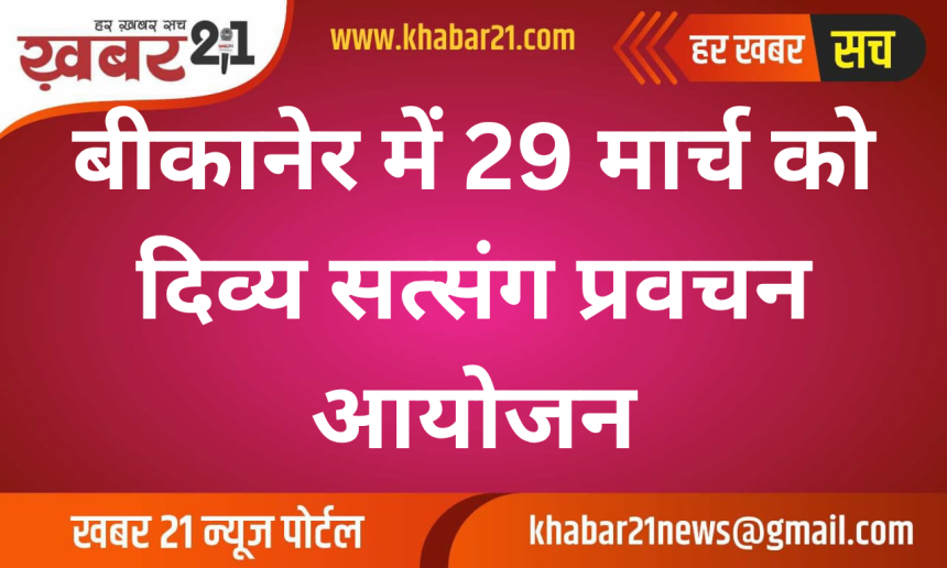 बीकानेर में आध्यात्मिक माहौल के बीच 29 मार्च 2026 (रविवार) को एक विशेष सत्संग एवं प्रवचन कार्यक्रम आयोजित किया जाएगा। इस अवसर पर श्रीमद् दंडी स्वामी शिवेन्द्राश्रम महाराज “साधक और सत्संग” विषय पर अपने दिव्य प्रवचन से श्रद्धालुओं को मार्गदर्शन देंगे।