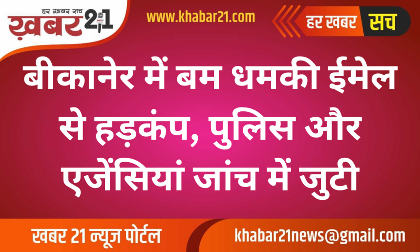 Khabar21 > Blog > बीकानेर > बीकानेर में बम धमकी ईमेल से हड़कंप, पुलिस और एजेंसियां जांच में जुटी
