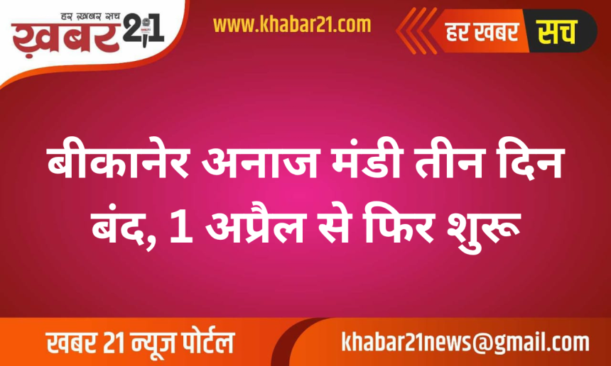 Khabar21 > Blog > बीकानेर > बीकानेर अनाज मंडी तीन दिन बंद, 1 अप्रैल से फिर शुरू