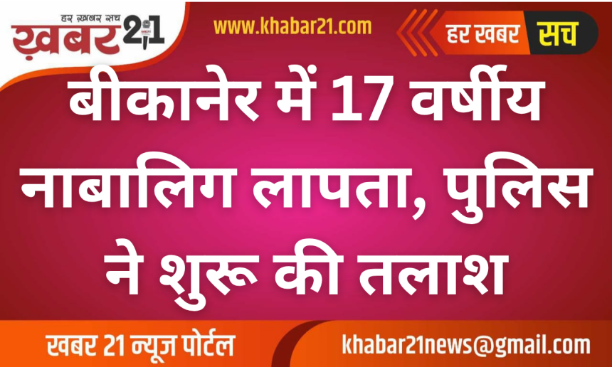 बीकानेर जिले में एक 17 वर्षीय नाबालिग के अचानक घर से लापता होने का मामला सामने आया है। घटना जसरासर थाना क्षेत्र की है, जिससे परिवार में चिंता का माहौल बना हुआ है।
