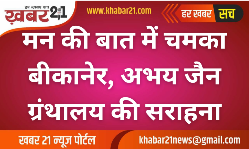 Khabar21 > Blog > बीकानेर > मन की बात में चमका बीकानेर, अभय जैन ग्रंथालय की सराहना – Bikaner News